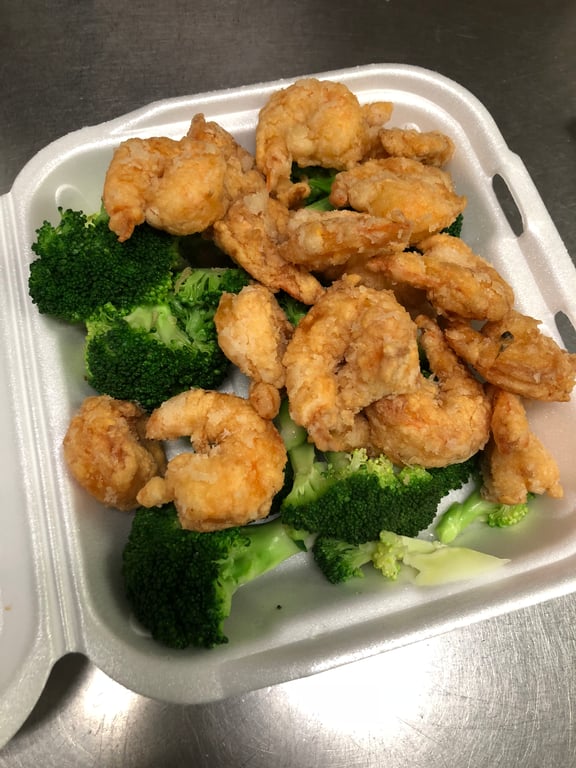 Lightly breaded fried shrimp, stir-fried with Creamy Siracha Mayo sauce served on top of a bed of broccoli.
